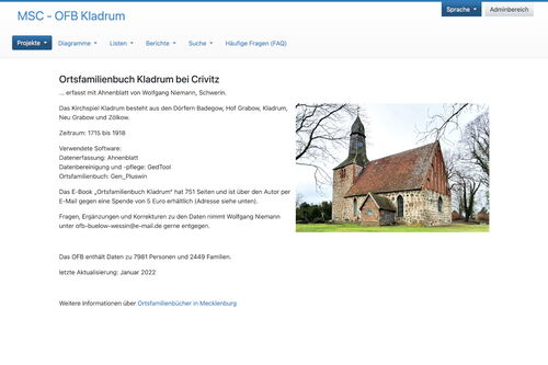 Für die Ortsfamilienbücher Kladrum und Wessin wurden uns von Wolfgang Niemann Ende Februar Updates zugesandt, in denen einige Ungenauigkeiten und Fehler korrigiert sind.
