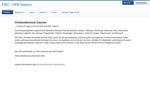 Für das OFB Dassow wurde von Karl-Heinz Schröder eine weitere Aktualisierung bereitgestellt. Die erfassten Daten enthalten nun 10011 Personen und 3215 Familien.