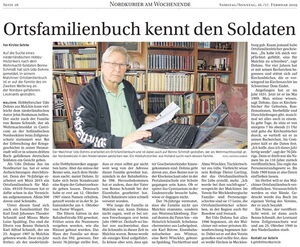 Unter dem Titel "Ortsfamilienbuch kennt den Soldaten" veröffentliche der Nordkurier in seiner Wochenendausgabe vom 16./17.02.2019 einen Artikel über die Forschungshilfe und das Vorhaben unseres Vereinsmitgliedes Udo Dohms in Malchin.